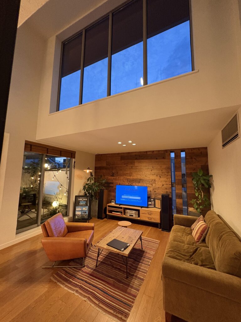吹抜けの高さをしっかり活かした設計で、たまたまお邪魔したのが夕方だったんですが、かなりいい雰囲気。