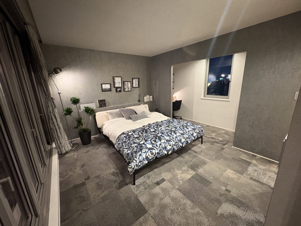 無彩色でまとめることにより、落ち着きのある印象と、家具やカーテンなどでどの様な色を使っても