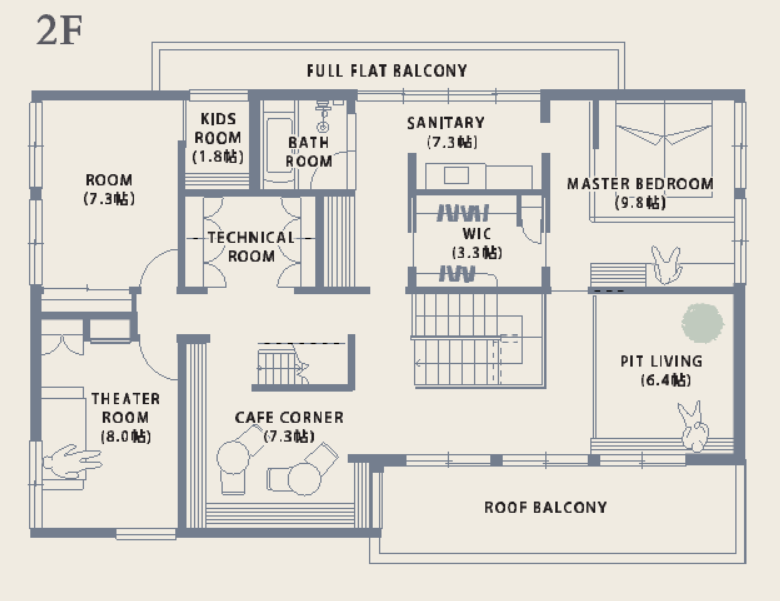 2FにはPIT LIVINGがあります。こんな空間があれば家族団らんで使うのかな…?とか思いつつ職業柄床下が気になる…